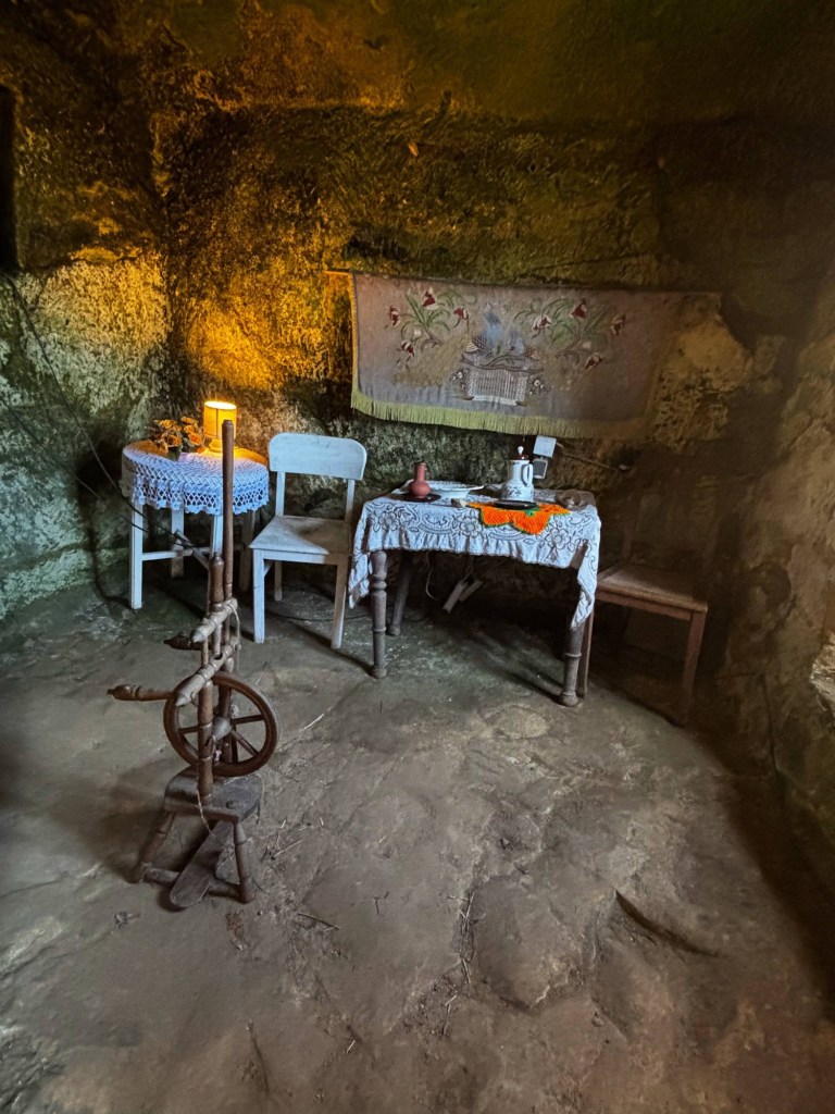 Wenn man die Höhlen besucht, bekommt man eine Vorstellung davon, wie einfach das Leben dort früher gewesen sein muss. Die Räume sind klein, die Wände bestehen aus rohem Sandstein und das Licht fällt nur durch wenige Öffnungen hinein.