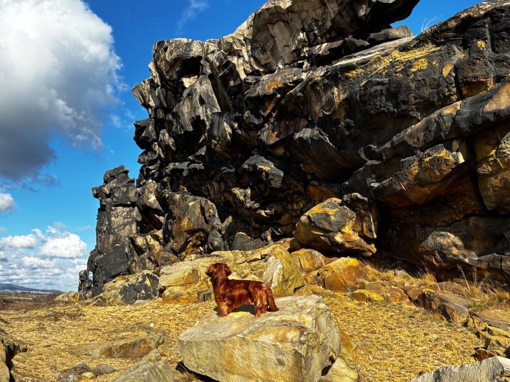Für Besucher mit Hund ist diese Gegend ideal. Viele Wege führen durch ruhige Waldgebiete oder entlang der Felsenlandschaften der Teufelsmauer.