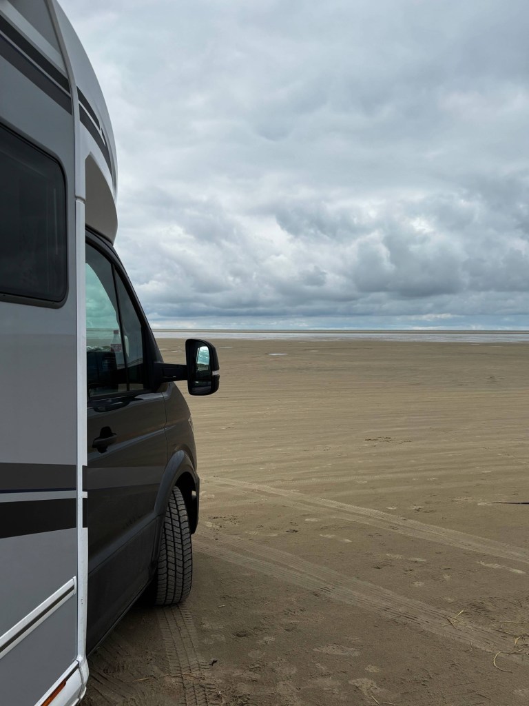 Der Strand ist riesig. Nicht einfach nur breit, sondern wirklich riesig. So breit, dass man mit dem Auto direkt auf den Strand fahren darf. Und genau in diesem Moment entsteht dieses Gefühl von Freiheit, das man an vielen Stränden längst verloren hat.