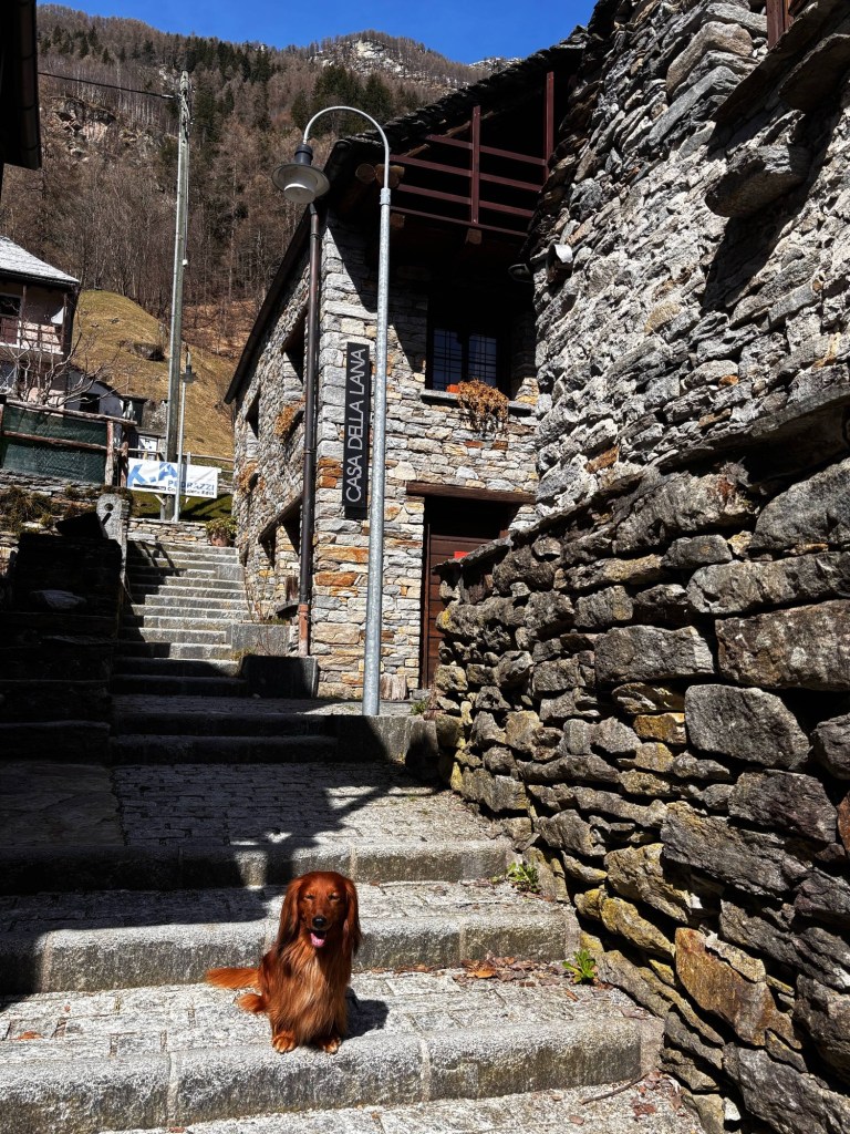 Für Reisen mit Hund im Tessin ist Sonogno ein sehr angenehmer Ort. Die Umgebung bietet viel Natur und zahlreiche Wege, auf denen man sich bewegen kann. Gleichzeitig wirkt das Dorf deutlich ruhiger als viele Orte rund um den Lago Maggiore.
