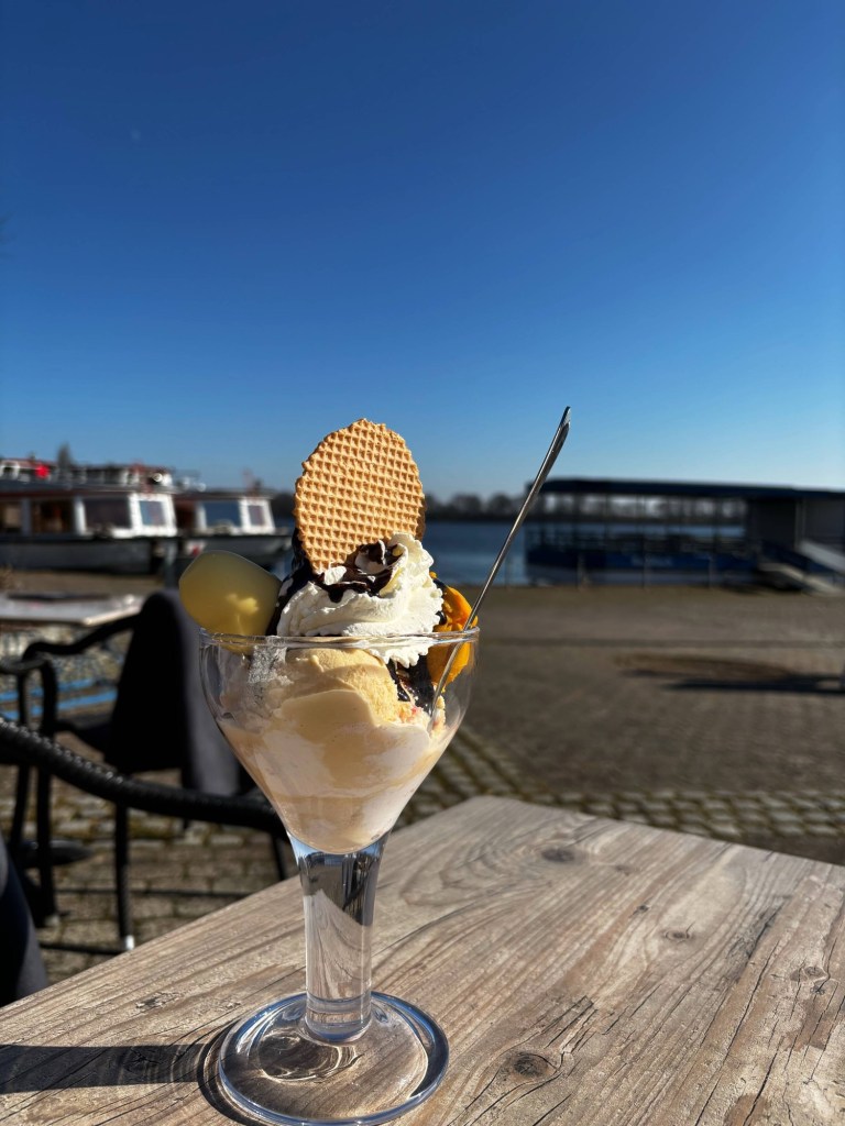 Viele Besucher setzen sich hier auf eine Bank oder in eines der kleinen Cafés. Der Blick über das Wasser, die Segelboote im Hafen und die ruhige Stimmung machen diesen Bereich zu einem der schönsten Plätze im Ort.