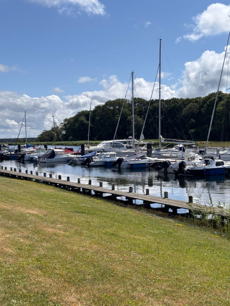 Gerade am frühen Morgen oder am Abend wirkt der Hafen besonders schön. Dann spiegeln sich die Boote im ruhigen Wasser des Boddens und die Landschaft wirkt fast still.