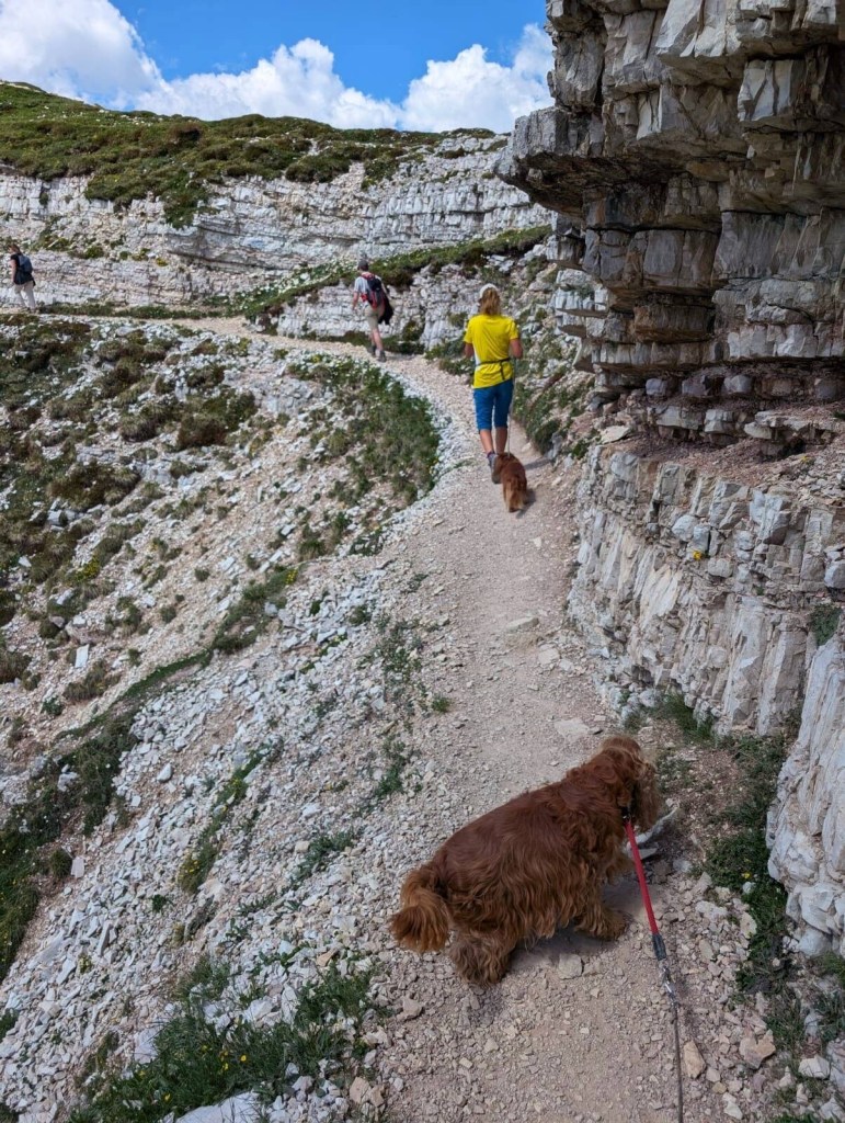 Allerdings sollte man mit Hund wirklich aufmerksam bleiben. Viele Passagen verlaufen entlang von Felskanten oder über steinige Wege.
