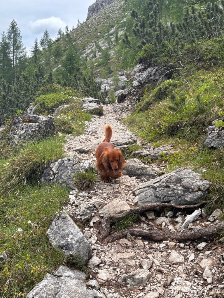 Gerade für Urlaub mit Hund in den Dolomiten ist Sexten ein idealer Ausgangspunkt. Viele Wanderungen beginnen direkt an den Bergstationen der Seilbahnen und führen über weite Almwiesen oder entlang der Bergflanken. Paul ist ein recht flinker Dackel und hat die meisten Strecken erstaunlich gut gemeistert.