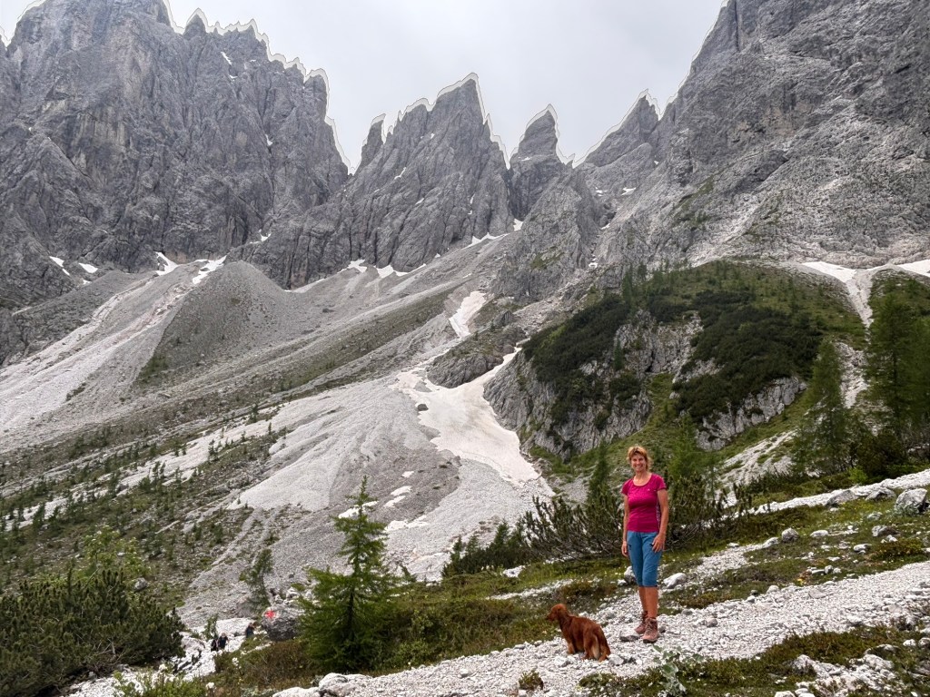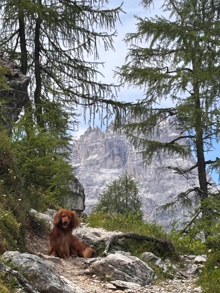 Die Dolomiten sind ohnehin eine beeindruckende Landschaft, aber Sexten hat mich wirklich besonders begeistert. Als ich dort mit meinem Dackel Paul unterwegs war, hatte ich mehrfach das Gefühl, mitten in einer riesigen Naturkulisse zu stehen. Überall ragen steile Dolomitengipfel auf, darunter liegen grüne Almflächen und Wanderwege, die sich durch diese Landschaft ziehen.