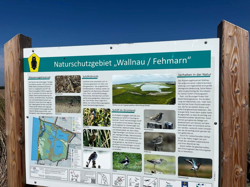 Das Wasservogelreservat Wallnau liegt im Westen von Fehmarn und zählt zu den bedeutendsten Vogelbeobachtungsgebieten Norddeutschlands. Bereits in den 1970er-Jahren wurde das Gebiet unter Schutz gestellt. Heute betreibt der NABU hier ein großes Naturzentrum.