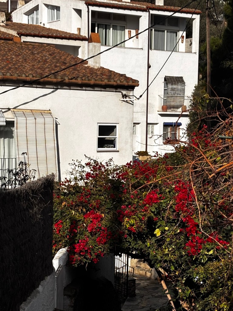 Als ich schließlich nach Cadaqués hinunterfuhr, lag das Dorf plötzlich vor mir wie ein weißes Amphitheater am Meer. Die Häuser schmiegen sich dicht aneinander, alle weiß gestrichen, mit roten Ziegeldächern. Dahinter ragt die Kirche Santa Maria über den Ort. Schon beim ersten Blick hatte ich das Gefühl, dass dieser Ort etwas Besonderes ist.