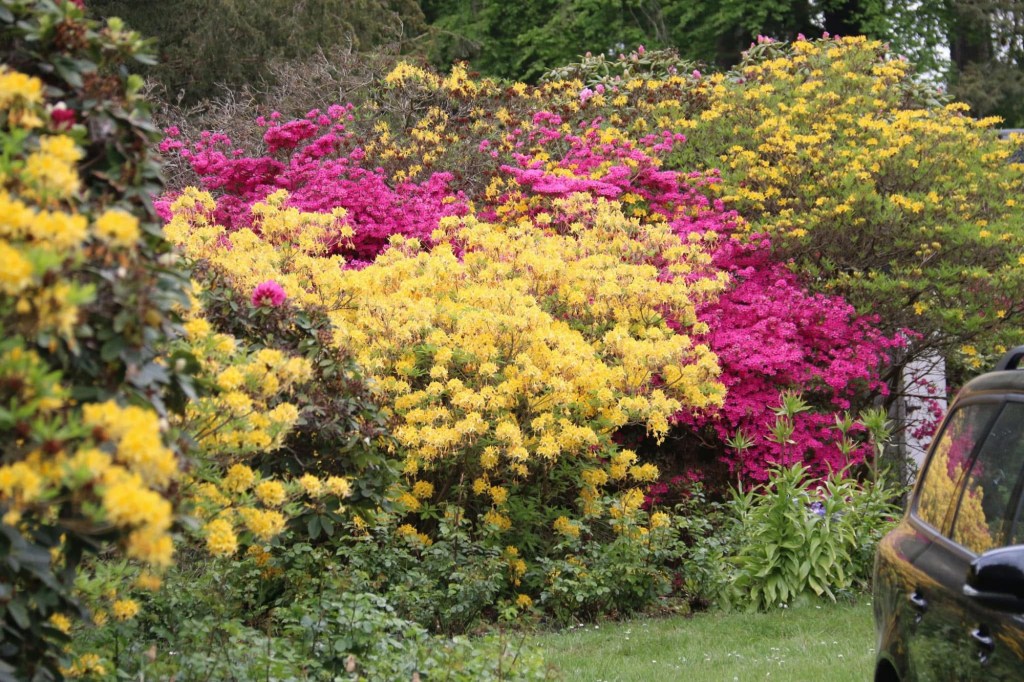 Besonders im Mai und Juni entfaltet sich hier ein spektakuläres Farbenspiel. Hunderte Rhododendron- und Azaleensorten stehen dann in voller Blüte. Zwischen den Wegen wachsen große Sträucher in allen möglichen Farben – von kräftigem Pink über violette Blüten bis hin zu zarten Pastelltönen.