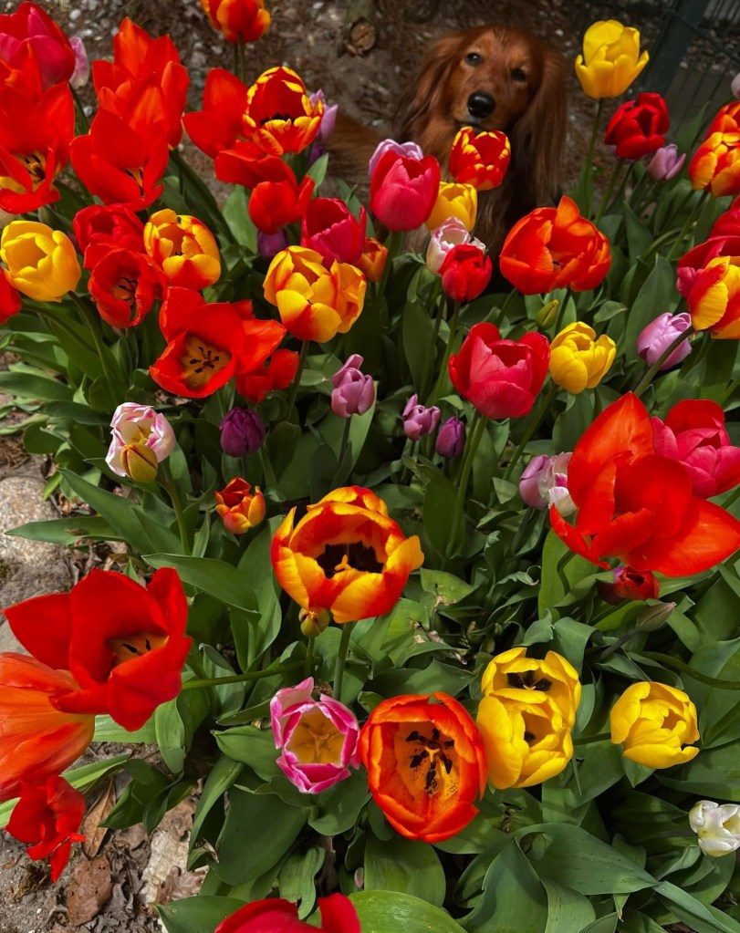 Tulpenfelder in der Nähe mit Hund: Frühlingsausflug ins Blütenmeer