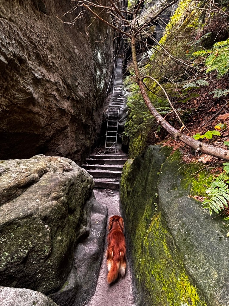 Abgesehen von einigen Stiegenwegen eignet sich das Elbsandsteingebirge hervorragend für Wanderungen mit Hund. Die meisten Wege verlaufen durch Wälder oder über breite Felsplateaus.