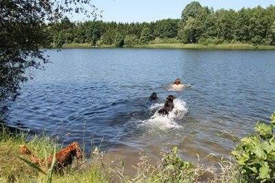 Viele Badeseen haben inzwischen eigene Hundestrände oder Hundebadestellen eingerichtet. Dort dürfen Hunde ausdrücklich ins Wasser und auch frei spielen.