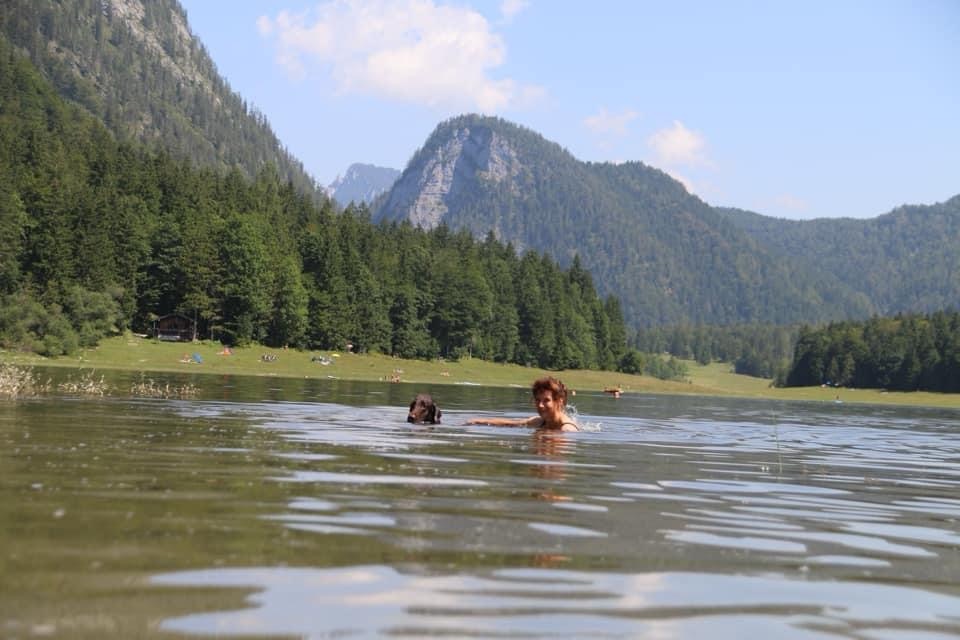 Die Hund und ich haben dort einen richtig schönen Sommertag verbracht. Das Wasser ist glasklar und die Kulisse mit den umliegenden Bergen einfach beeindruckend. Gerade nach einer Wanderung ist es ein herrliches Gefühl, kurz ins Wasser zu springen oder einfach am Ufer zu sitzen und die Landschaft zu genießen.