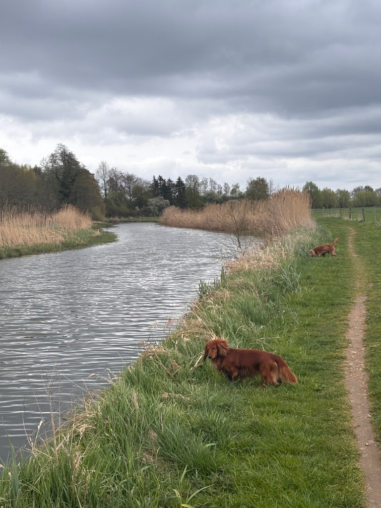 Überall gab es diese hübschen Feldwege, mal am Wasser und mal durch die Feldmark. Den Hunden gefiel es gut und wenn die Hunde happy sind, sind es die Menschen dann halt auch.