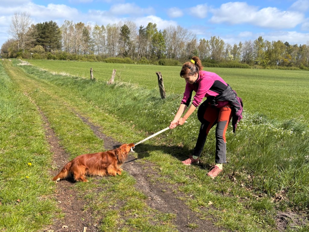 Paul hatte noch so einen Zurrgurt gefunden und dann musste ich mit ihn erstmal ne Runde spielen. Obwohl er schon fast 5 Jahre ist, ist er immer noch total verspielt. Ich finde das schön.