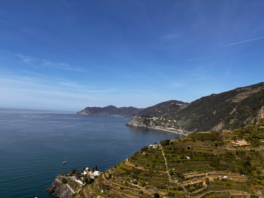 Besonders beeindruckend sind die Höhenwege oberhalb der Cinque Terre. Von dort blickt man auf das Meer, die bunten Häuser der Dörfer und die steilen Felsen entlang der Küste.